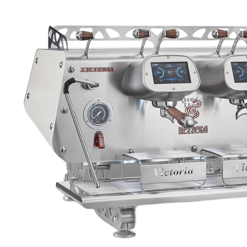 Victoria’s multi-boiler technology is engineered for intensive use, offering precise control of temperature and pressure through programmable brewing profiles that enhance both single origins and complex blends. The machine features independent boilers with dedicated on/off switches — two for steam and hot water, and one coffee boiler for each group — ensuring maximum productivity at all times. A dedicated program also allows the two steam boilers to be combined to create a continuous steam supply, essential during peak service.